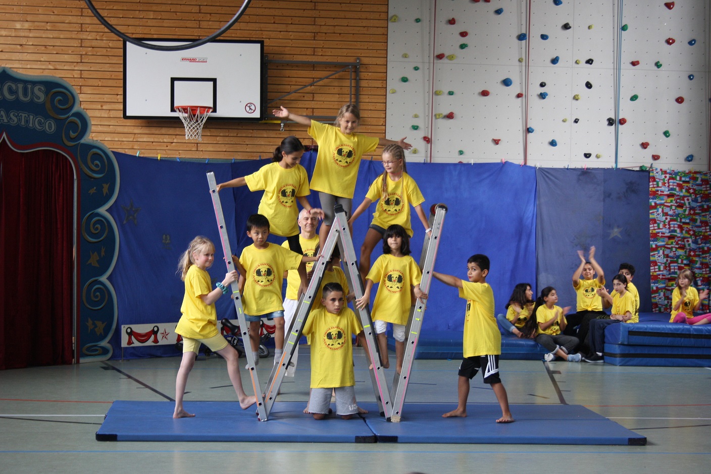 milien und der Nachbarschaft im Alter von 6 bis 13 Jahren wieder ein tolles Erlebnis. Gemeinsam lernten und trainierten die 18 Kinder von Montag jeden Tag von 10 bis 16 Uhr für den großen Auftritt am Freitag. Einrad, Trampolin, Drahtseil, Jonglieren, Clownerie, Akrobatik und vieles mehr konnten die Kinder voller Stolz ihren Eltern und Freunden in der Circus-Show zeigen.