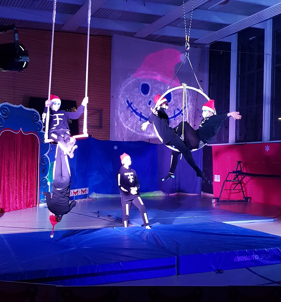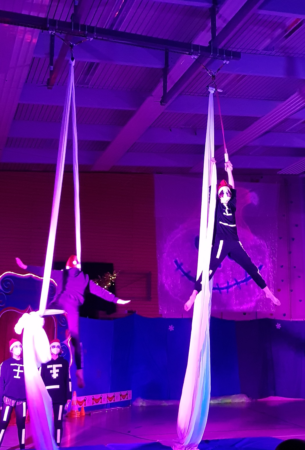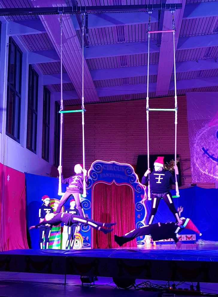Die Gestaltung der zahlreichen Zirkusnummern erinnern an den Film „The Nightmare Before Christmas“. Damit thematisierte man gleichzeitig zwei Feiertage: Halloween und das Weihnachtsfest. Das hat man auch an den Kostümen der Artisten und Artistinnen gesehen. Diese waren als Skelete verkleidet und trugen außerdem Weihnachtsmützen. Ein riesiger Totenkopf schmückte zusätzlich die Manege. In der schaurig schönen Aufführung unterhielt auch der gruselig-lustige „Hausmeister“. Das war Volker Becker, der Circusdirektor, der das Programm mit seinen Auftritten zwischen den einzelnen Nummern auflockerte. Am Ende wurde mit lautem Applaus belohnt und es gab für alle Mitwirkende einen Schokoladen-Weihnachtsmann.