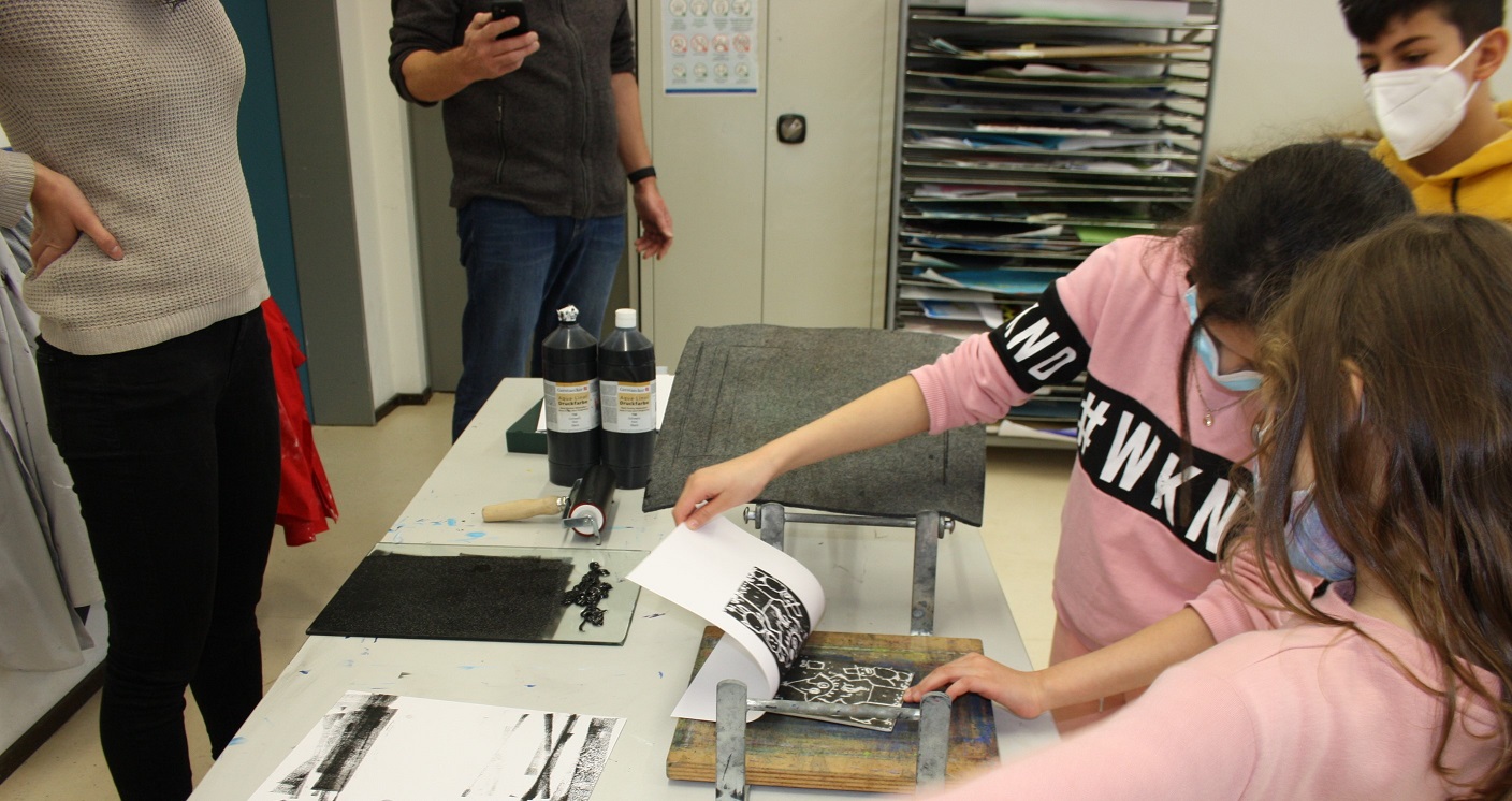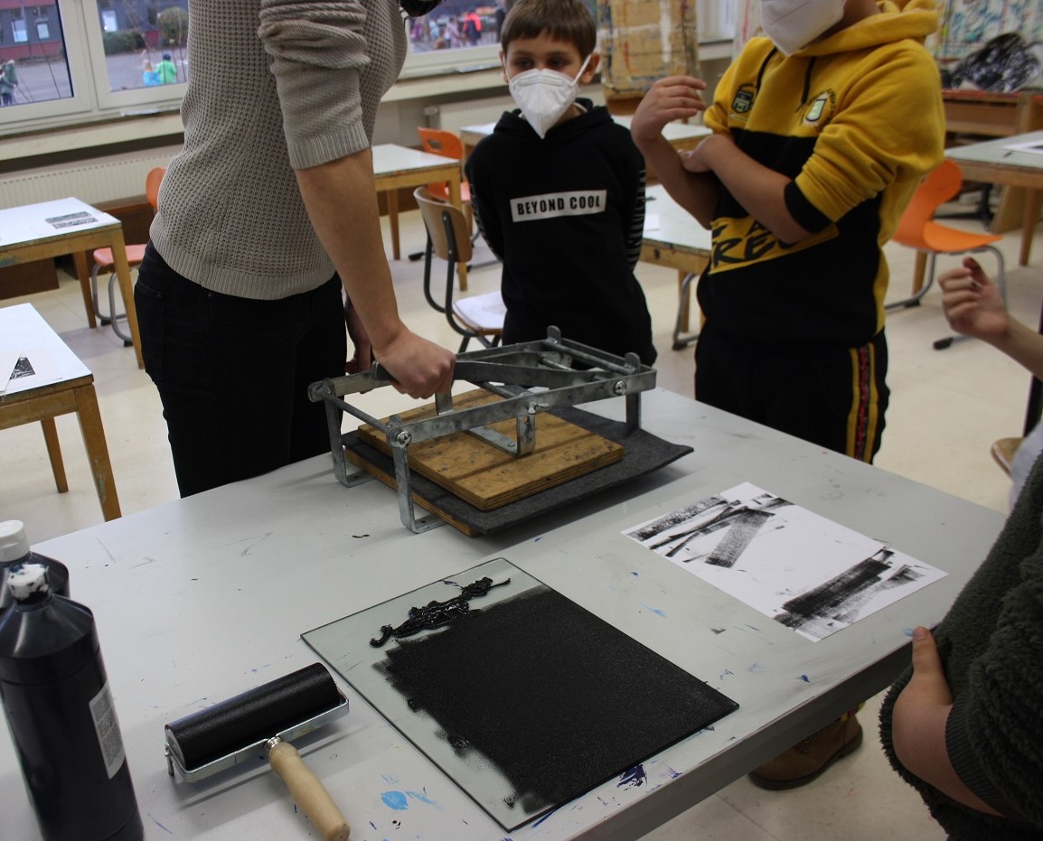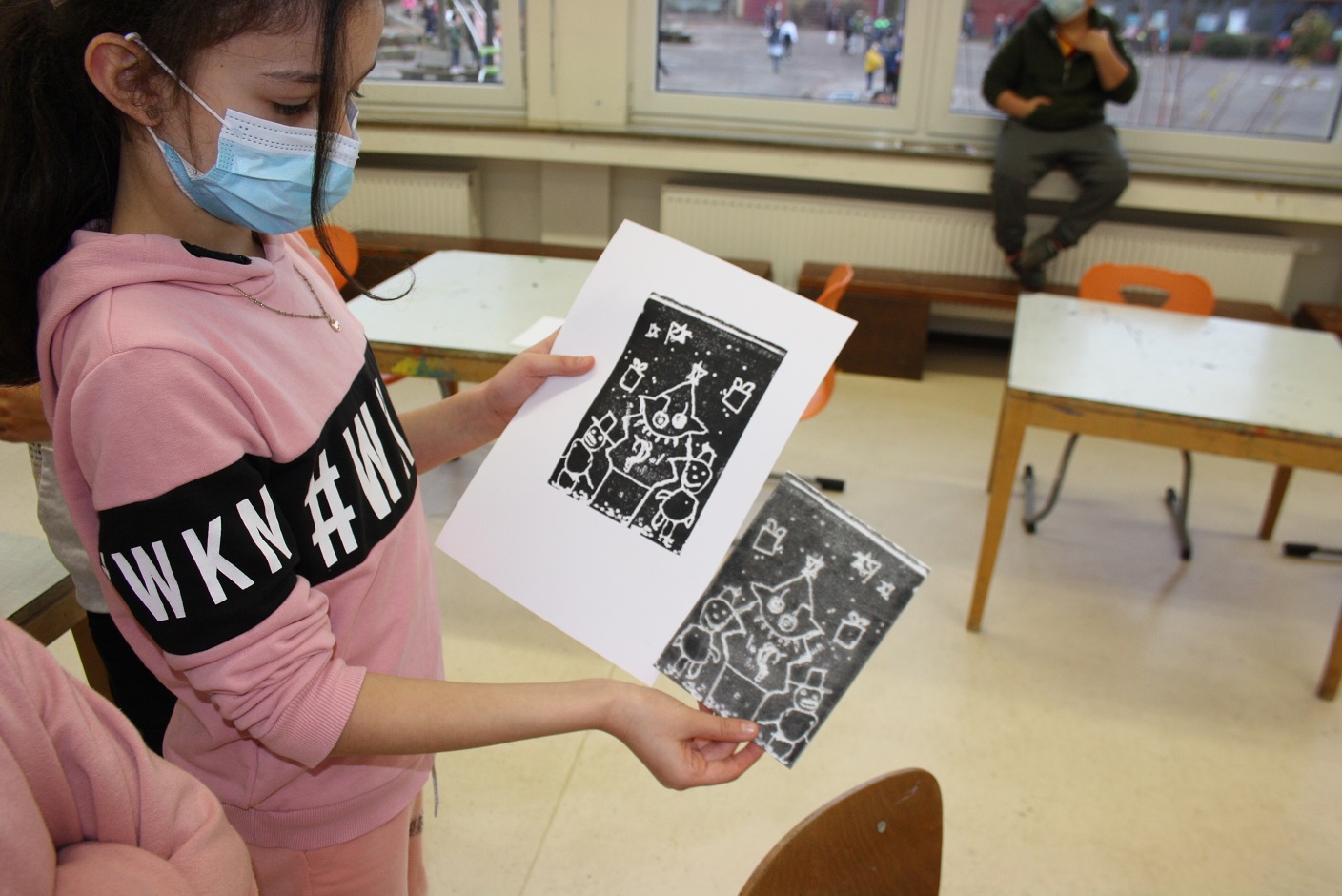 Dieses Jahr besuchen uns wieder die Kulturstrolche von der GGS Donhöffstraße und der GGS Herderstraße. Wie jedes Mal bekommen die neugierigen Schülerinnen und Schüler einen Einblick bei den Jugendkunstgruppen und dürfen an zwei besonderen Angeboten teilnehmen: der Druckwerkstatt und dem HipHop-Tanzkurs.