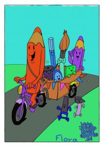 Als ich endlich einen Parkplatz gefunden habe und ankomme, steht das rote Zelt der Jugendkunstgruppen schon. Jetzt muss im Inneren noch alles vorbereitet werden und die Plakate für die Wände des Zeltes dürfen natürlich auch nicht fehlen. Nachdem auch die letzten Flyer am richtigen Platz liegen und wir die andere Seite des Zeltes, nach langem hin und her überlegen, doch noch geöffnet haben, heißt es warten bis die ersten Besucher kommen.