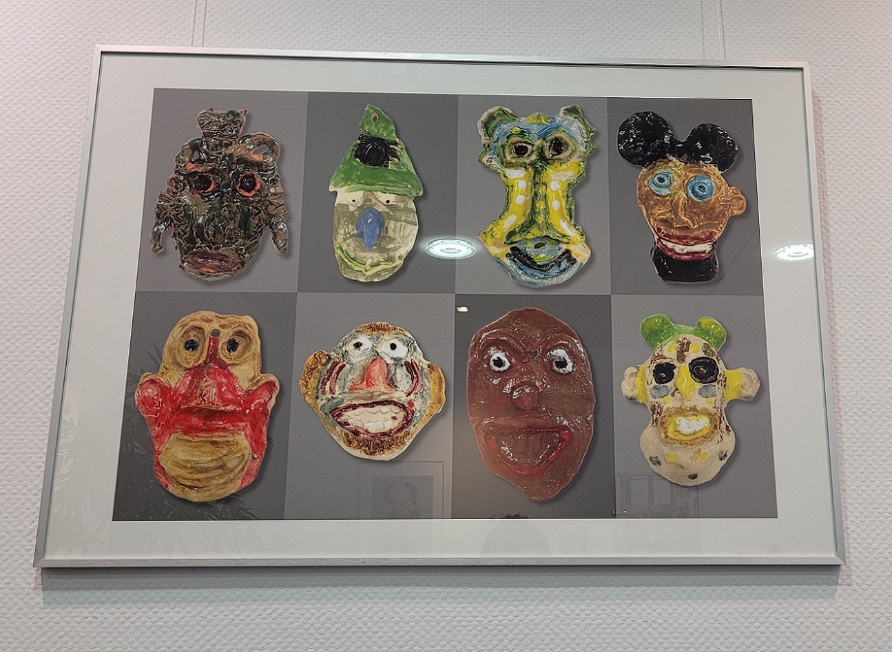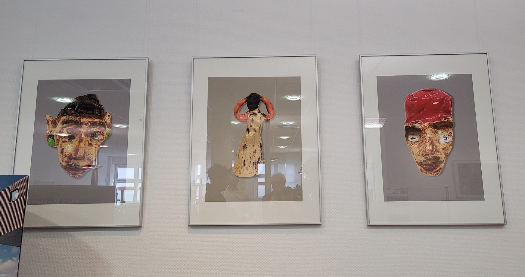 Die Arbeiten unseres Keramik-Kurses an der St.-Stephanus-Schule in Hitdorf schmücken nun die Wände der Sparda-Bank Filiale in Opladen und lassen die Besucherinnen und Besucher staunen. Die Bilder zeigen eine Gruppe von Tier- und Kopffiguren aus Ton in verschiedenen Farben. In Wirklichkeit sind diese auch gar nicht so groß – gerade mal Handflächengröße. Doch durch die Fotografien kommen diese richtig gut zur Geltung – ganz zu recht!