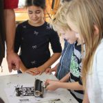 Beim Tanzen entwickelten die Kinder spielerisch eigene Tanzschritten, um dann eine kleine Choreografie einzuüben. Zur selben Zeit designten die Kinder in der Druckwerkstatt eigene Druckplatten und brachten ihre Drucke aufs Papier. Nach einer Stunde wurde getauscht, sodass jedes Kind beides ausprobieren konnte. Zwischen drin wurde noch gemeinsam gegessen, damit man gestärkt für das neue Erlebnis war. Nach zwei Stunden war leider schon wieder alles vorbei und die Kinder setzten ihre orangen Kultrurstrolche-Kappen auf und machten sich auf den Rückweg zur Schule.