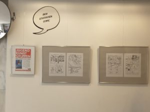 Das Comic-Heft bekommt ihr, solange der Vorrat reicht, im Büro der Jugendkunstgruppen. Die Ausstellung wurde zunächst im November und Dezember 2017 in der Flurgalerie der Jugendkunstgruppen gezeigt. Ab dem 30.01.2018 hängen die Comics im Foyer des Verwaltungsgebäudes Goetheplatz in Leverkusen-Opladen.