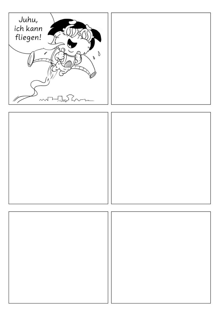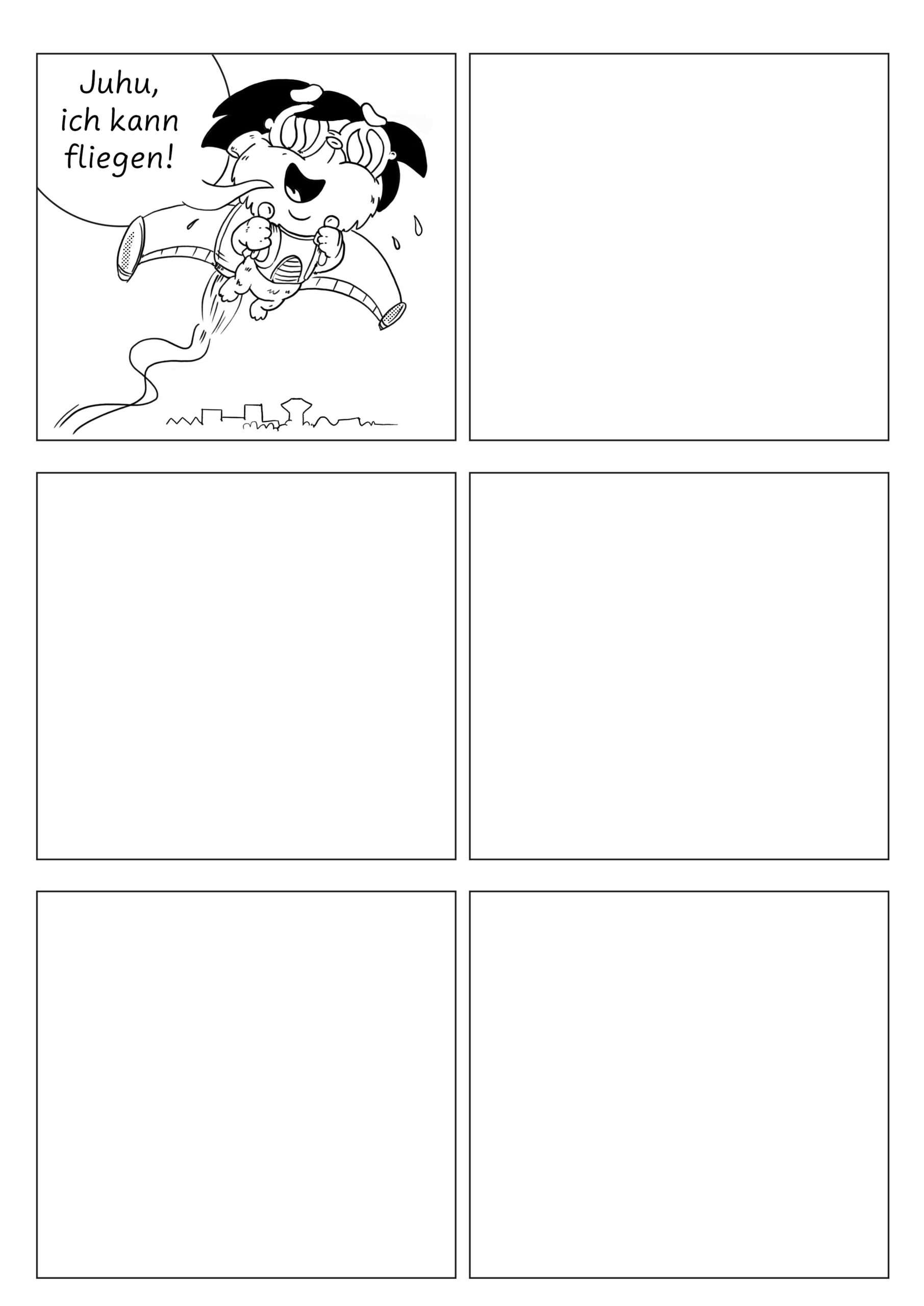 Das erste Panel ist schon gefüllt aber wie geht es weiter? Vielleicht fällt dir ja was ein! Wie die Geschichte weiter geht, entscheidest du. Viel Spaß!“