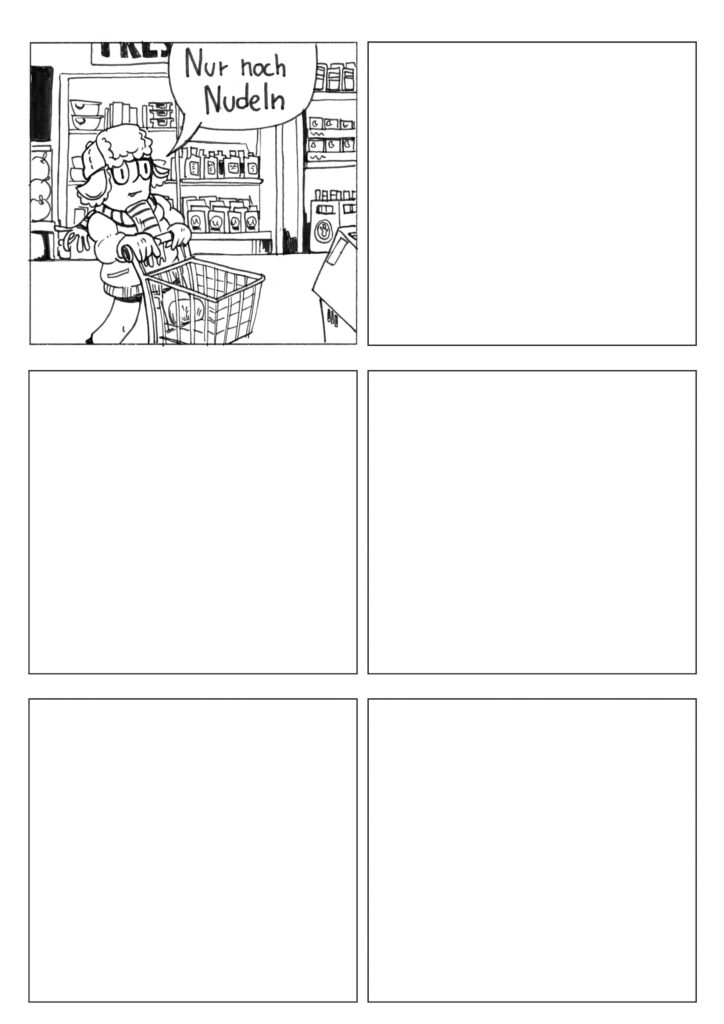 Das erste Panel ist schon gefüllt aber wie geht es weiter? Vielleicht fällt dir ja was ein! Wie die Geschichte weiter geht, entscheidest du. Viel Spaß!“