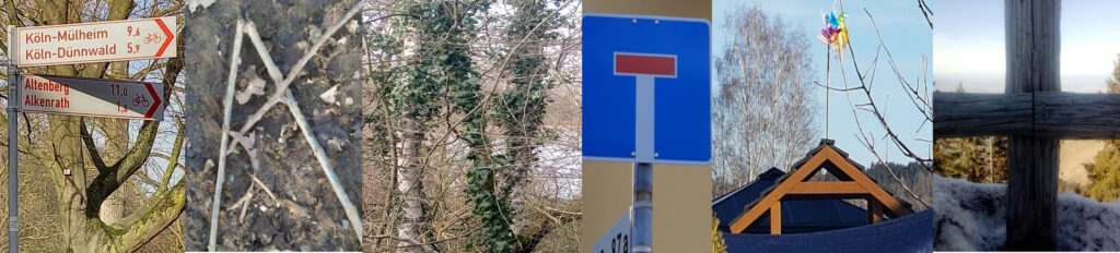 Für die letzte Probe hat Gruppenleiter Matthias Klaes eine Art Schnitzeljagd organisiert, bei der alle Teilnehmenden im Vorhinein einen Brief mit Aufgaben bekommen haben. Die Aufgaben wurden dann bei einem Telefonat mit einer zufälligen Partner:in bei einem Spaziergang gelöst. Eine Aufgabe war es die Buchstaben FANTA+ in der Natur zu finden. Woraus eines der beiden Bilder entstanden ist.