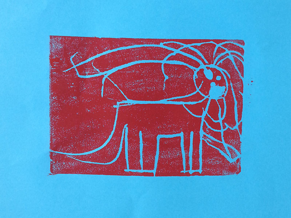 Alles was für diese einfache und sehr beliebte Technik gebraucht wird ist eine glatte Styroporplatte, ein Bleistift, Druckfarbe eine Walze, Papier und Fantasie.