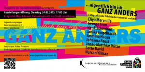 Seit Mai letzten Jahres arbeiten 9 Jugendliche, mit Kursleiter Alfred Prenzlow, an dem Kulturrucksack – Fotoprojekt „…eigentlich bin ich GANZ ANDERS“. Jetzt sind die Bilder im Kasten und schon am 24. Februar werden die fertigen Arbeiten im JKG – Zentrum präsentiert. Ihr seid alle herzlich eingeladen, die Vernissage zu besuchen, um 17:00 geht es los.