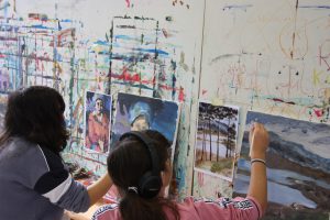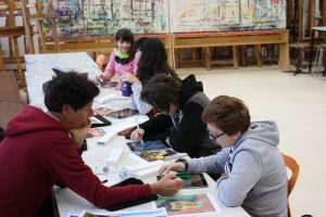 So malten wir am ersten Tag jeder ein Bild mit Pinseln und Farben auf eine Leinwand, am zweiten Tag sollten wir versuchen, das gleiche Bild auf dem iPad zu malen. Den dritten Tag verbrachten wir mit einer Exkursion ins Museum Ludwig in Köln, wo wir uns die verschiedenen Ausstellungen anschauten und anschließend Fotos der Ausstellungsräume machten, die wir später mit unserem digitalen Malprogramm überarbeiteten. Am letzten Tag probierten wir etwas Ähnliches nochmal mit Pinsel und Farbe aus, um vergleichen zu können, welche Schwierigkeiten die beiden verschiedenen Methoden mit sich bringen. Am Ende des Workshops hatte jeder von uns einige zufriedenstellende Ergebnisse vorzuzeigen, die nach den Herbstferien ausgestellt werden sollen.